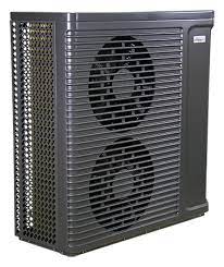 Outdoors, the unique condensing unit, technically known as a “monobloc heat pump,” contains virtually all of the components used in the refrigeration cycle, including the compressor, exhaust fan, condenser coil, evaporator coil, other related controls and valving, plus a heavy duty heat air-to-water heat exchanger. Unlike central and mini-split heat pumps that heat and cool a home using forced air, a monobloc heat pump is not a split-system design.