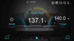 Indoors, the system features a 40-gallon storage tank that contains non-potable water, or in some cases, a non-toxic antifreeze solution. The water in this tank, which is heated either by the heat pump or by backup electric heating elements in the tank – or if used in a dual fuel application, potentially by the existing gas boiler – is circulated around the home to provide heat in the usual, traditional ways (baseboard heaters, etc.). In some system designs, a water-to-water heat exchanger may also be employed indoors. There’s a variety of ways that the Ambient heat pump can be customized to fit with existing hot water based heating systems.